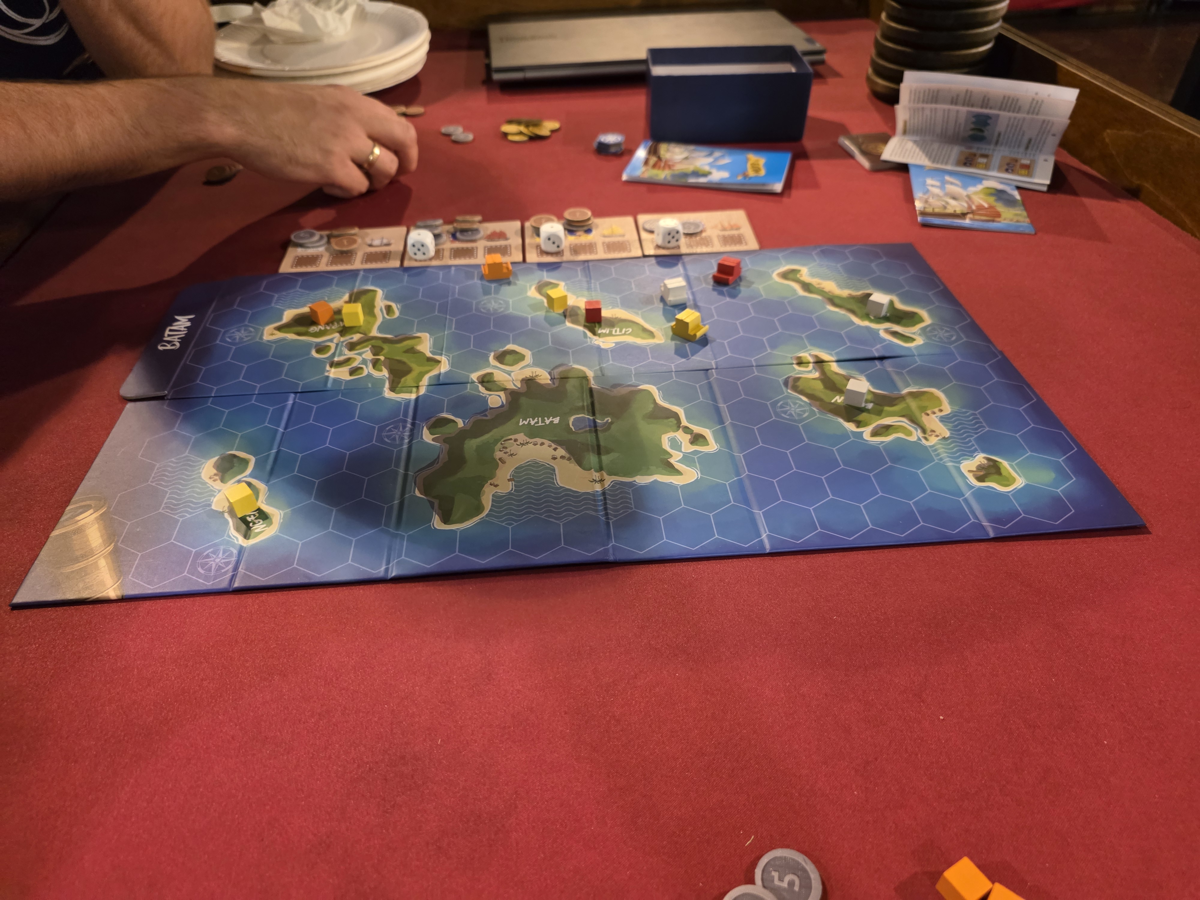 Another one of Korean games which are reprints of classics where the box is the board. This is a sort of bidding pick up and delivery game. You are setting a price to crew (dice) your ship that determines how far you move as you race around islands dropping of cargo. I didn't overly enjoy the game, it has some fun moments but also felt like it was hard to do much when you are behind.