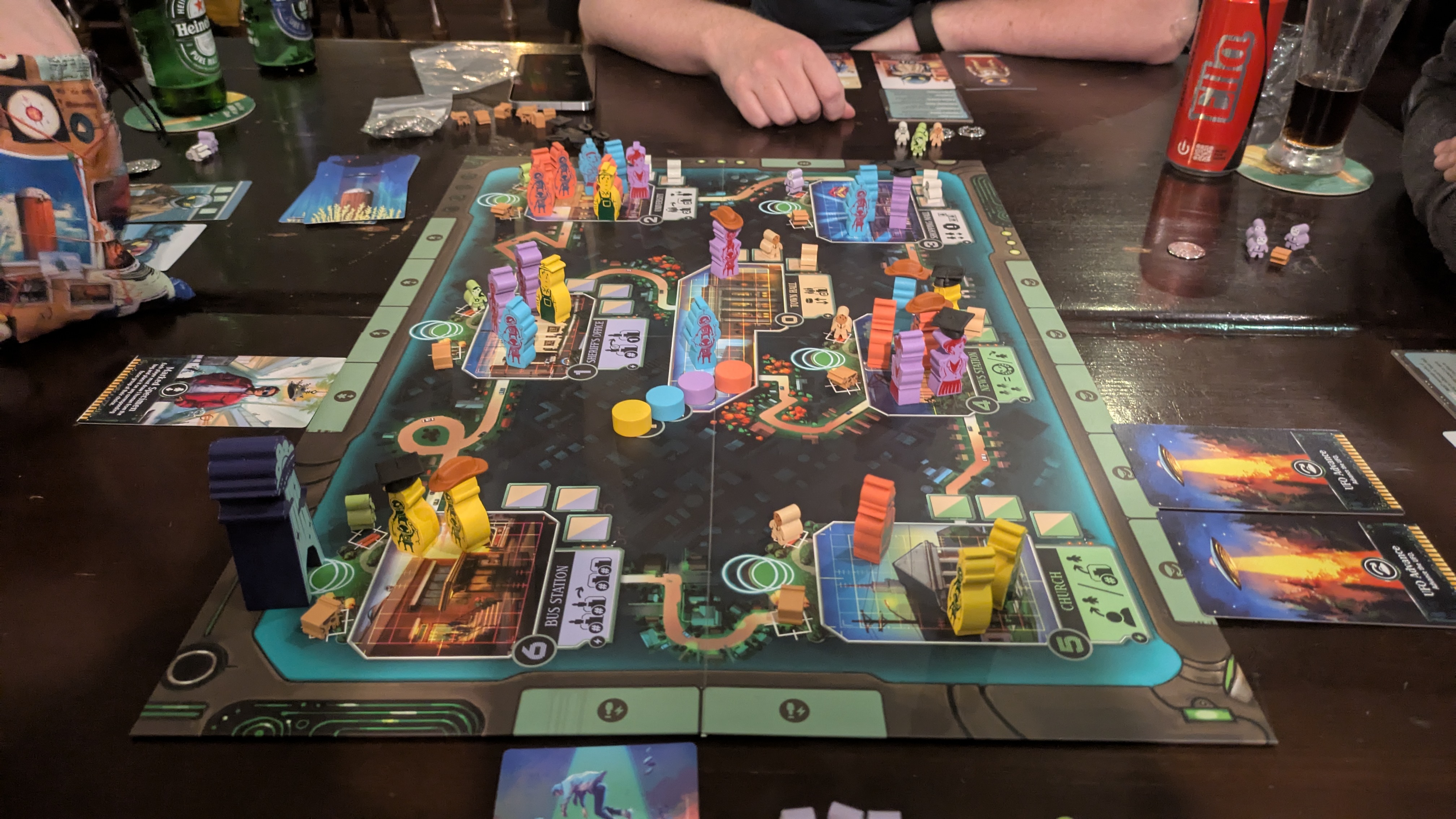 Impression: A majority control game about abducting humans and cows. The deck of 12 cards controls what event happens each turn, meaning its about playing the odds more then constructing an explicit plan. Good game greatly elevated by a well executed theme and artwork. Hats!!